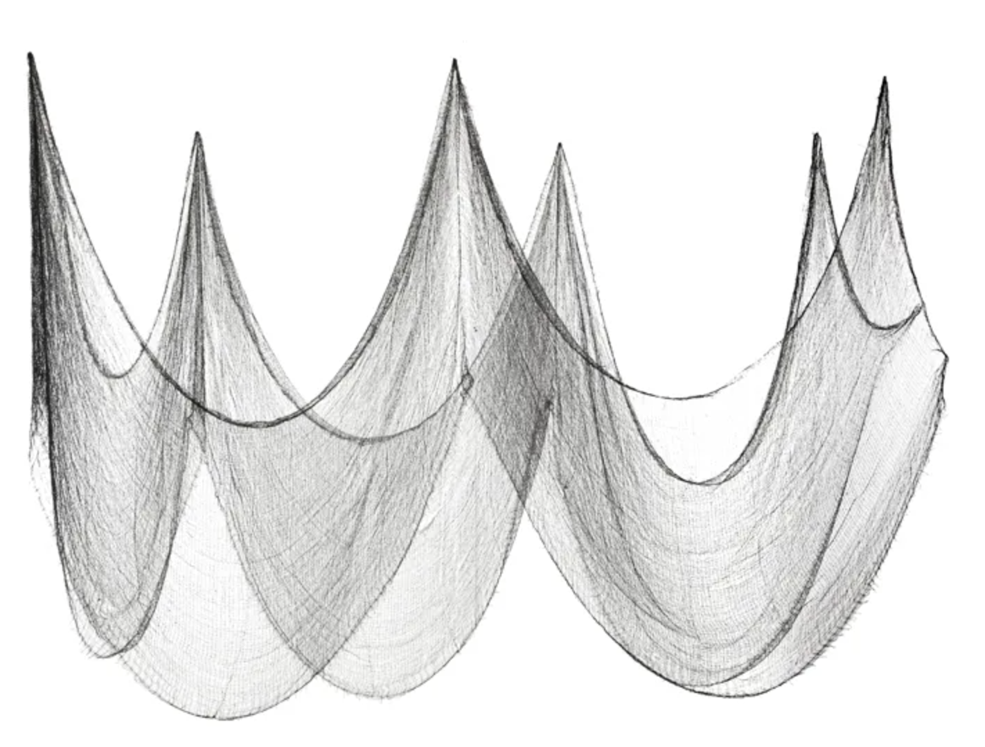 Decoração teia de aranha preta para Halloween com a medida de 9,80m de comprimento e 72cm de largura.