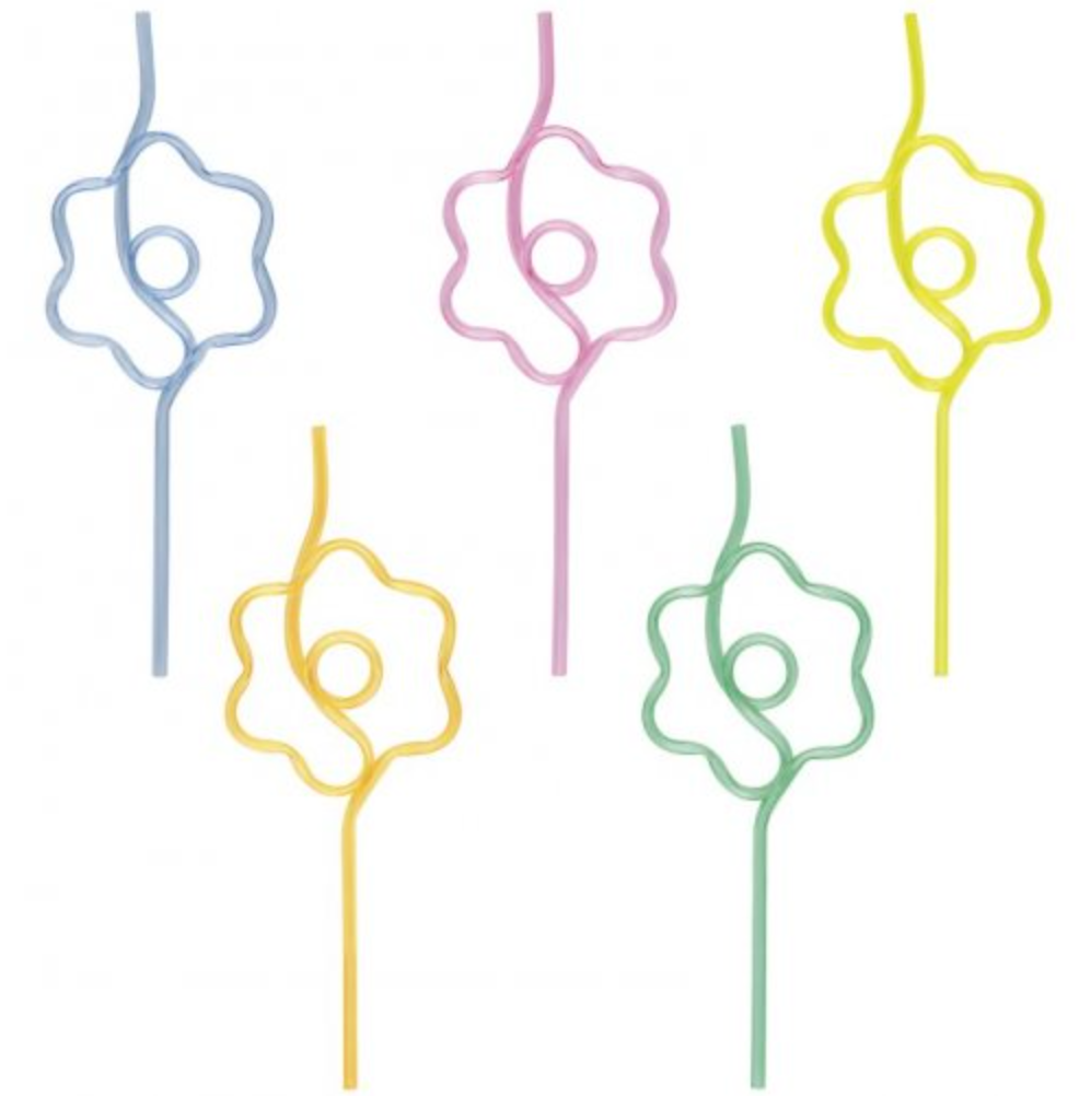 Colored paper straws with flowers, 19.5 cm high.