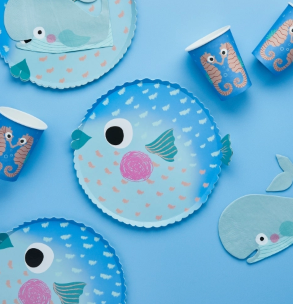 Pratos do tema Fundo do Mar, para festa ou aniversário, com 23cm de diâmetro.