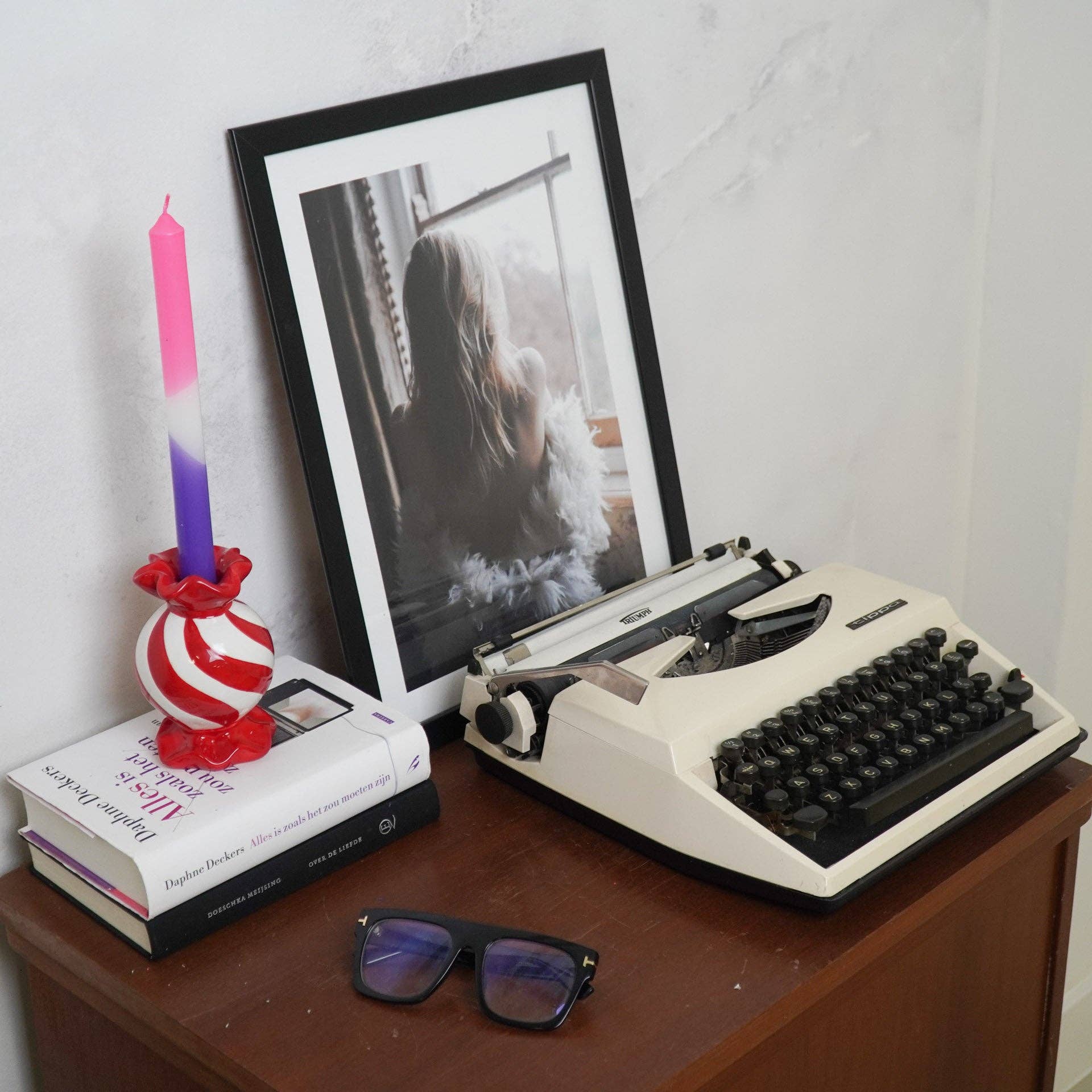 Este castiçal acrescenta uma nota divertida e fresca ao ambiente, perfeito para criar uma atmosfera leve e colorida.