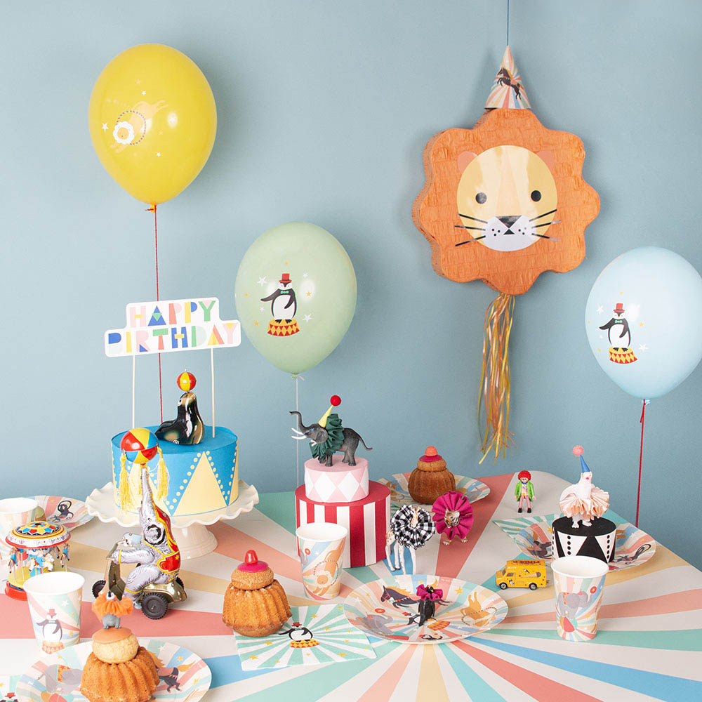 Balões do tema Circo para festa de aniversário, com 30cm de diâmetro.