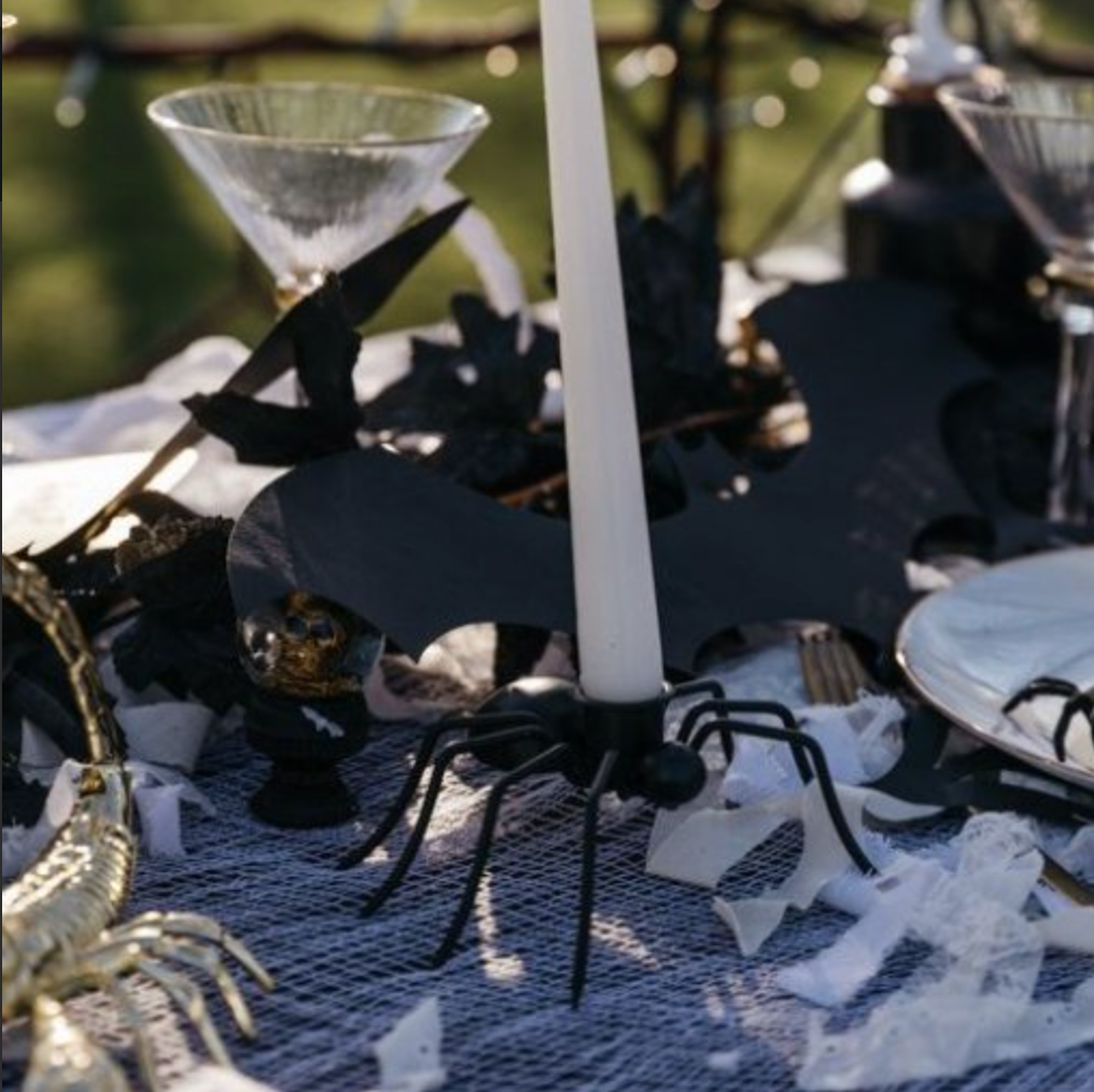Castiçal em forma de aranha, em metal, com a medida de 6 x 15,5 x 13cm.