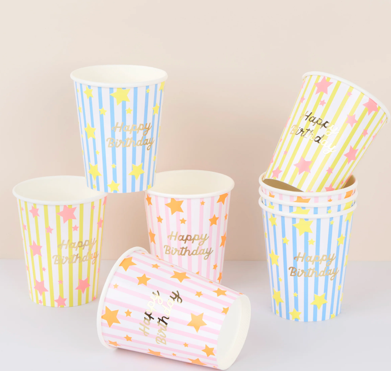 Copos de papel, para festa ou aniversário, com a capacidade de 256ml.