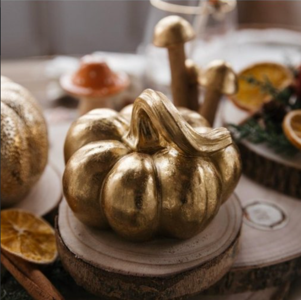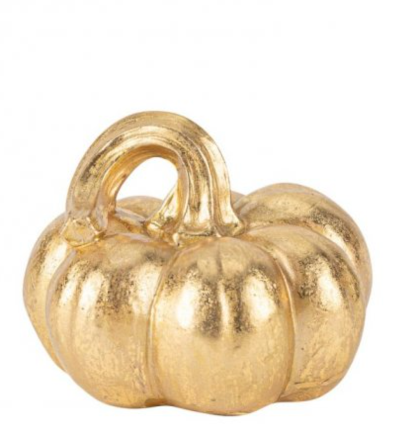 Abóbora decorativa, em resina, com a medida de 10 x 8,5cm.