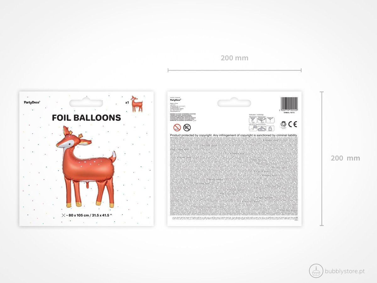 Balão mate em forma de veado, com a medida de 80 x 105cm após enchimento.