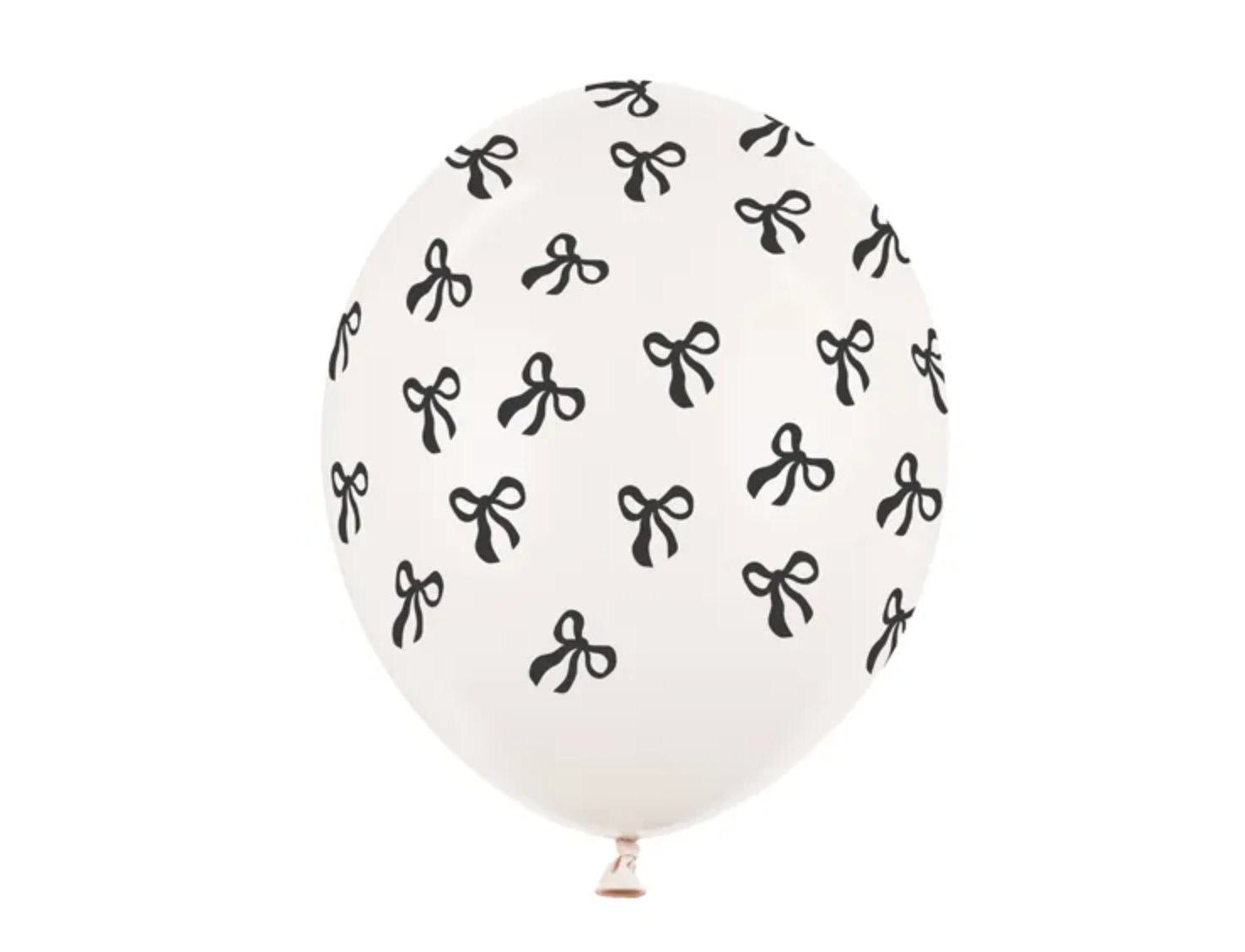Conjunto de balões bege com estampa de laços pretos, com a medida de 30cm.