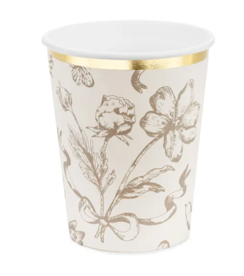 Copos com estampa de flres, para festa ou a niversário, com a capacidade de 220ml.