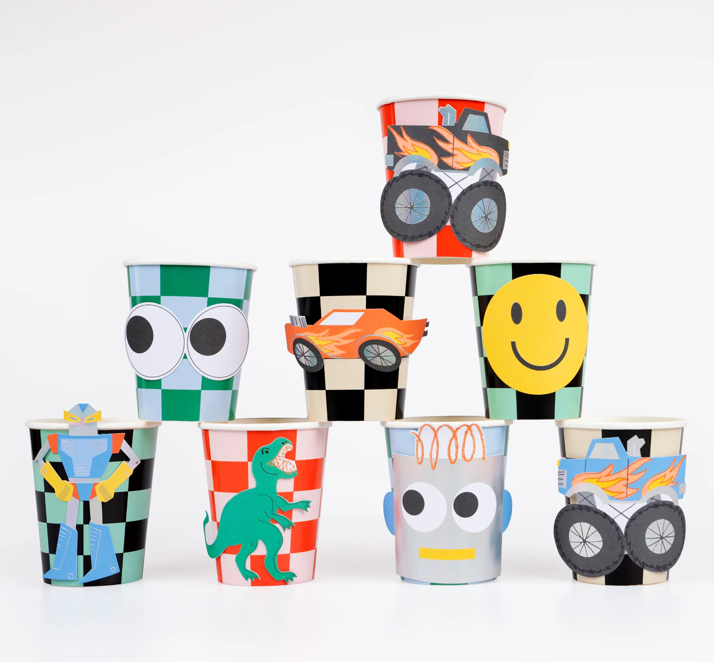Copos do tema Toybox para festa de aniversário, com capacidade de 256ml.
