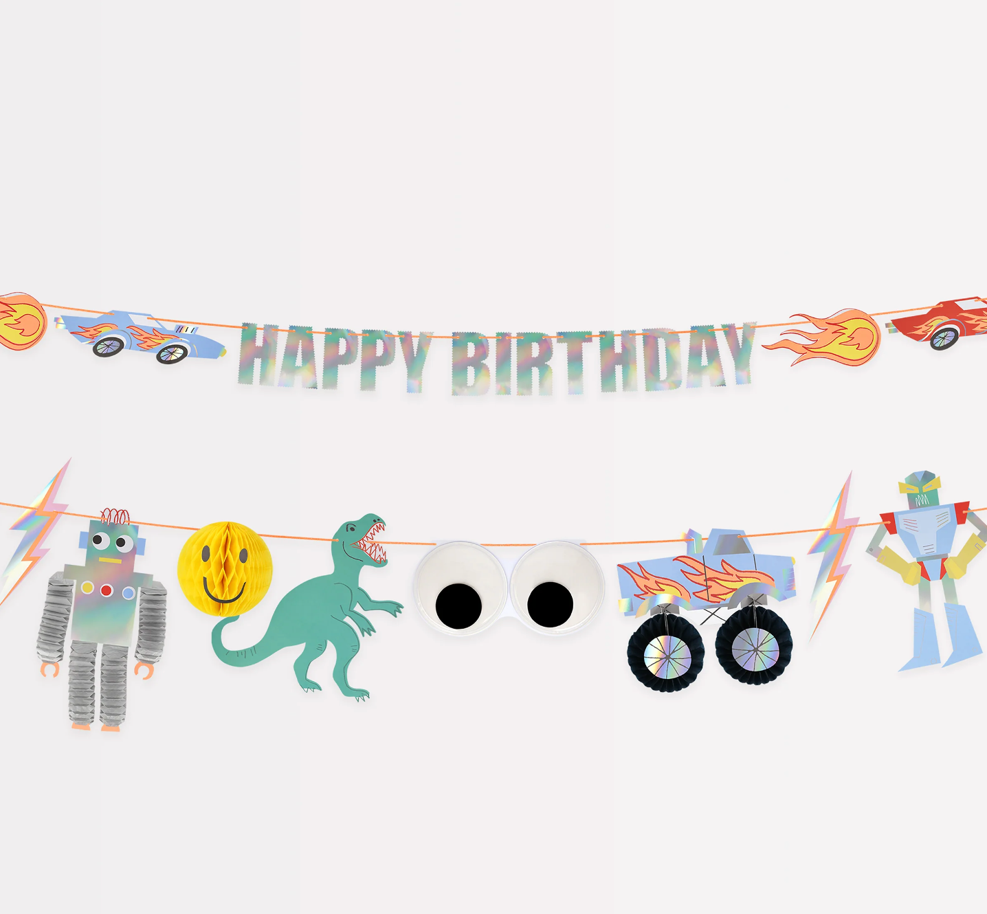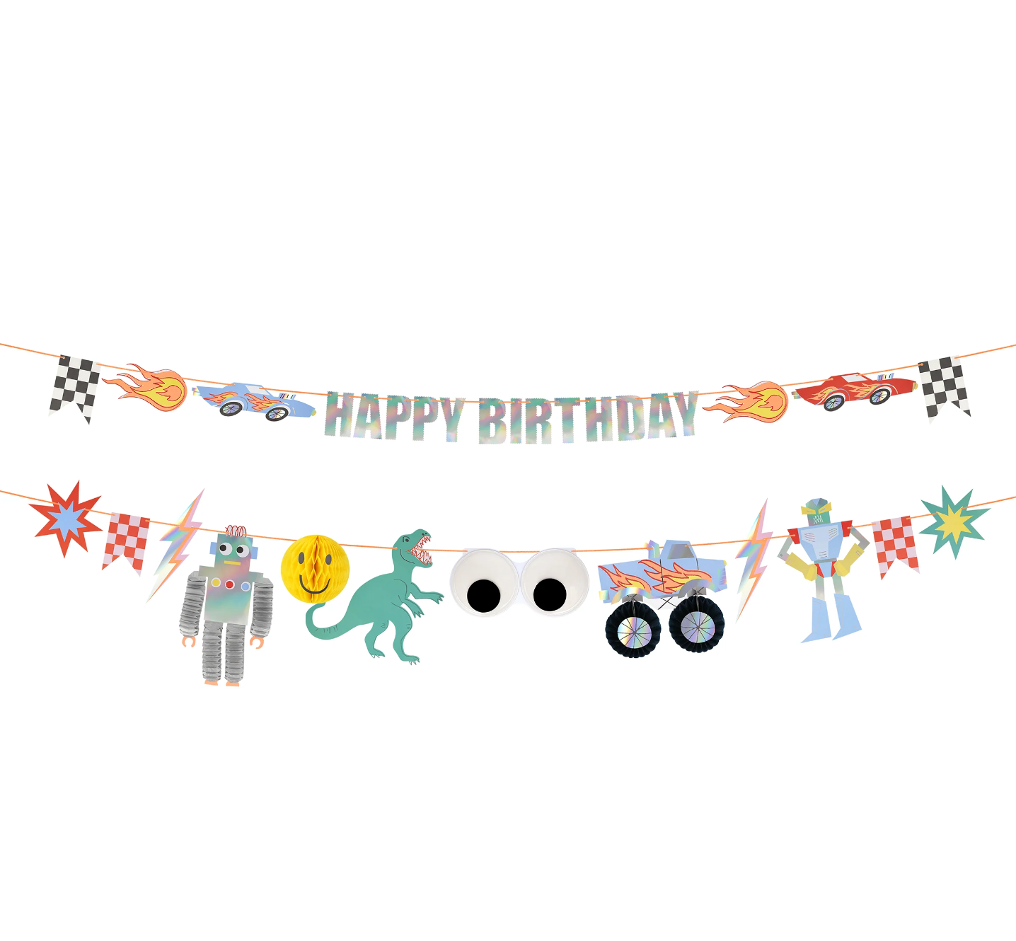 Grinalda do tema Toybox, para festa ou aniversário, com 2 grinaldas com fio de 2,9m.