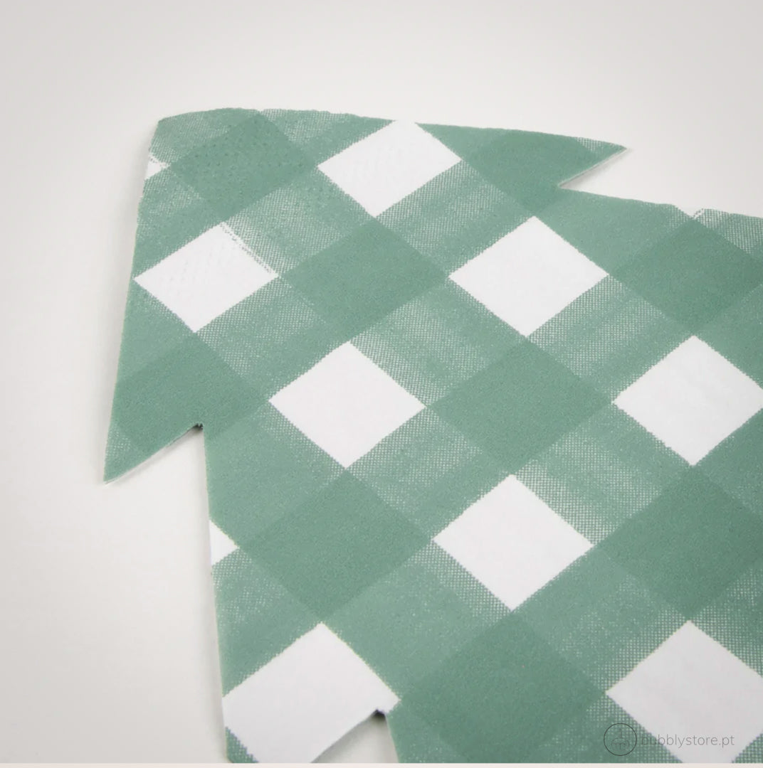 Guardanapos com formato de árvore de natal, com a medida de 11,7 x 16,5 cm.