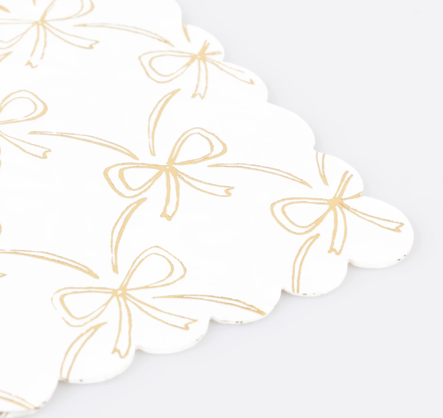 Estes guardanapos elegantes com padrão de laço dourado são o toque de charme e sofisticação ideal para a sua celebração. Perfeitos para uma festa de aniversário, batizado ou qualquer evento especial que exija um apontamento delicado e festivo.
