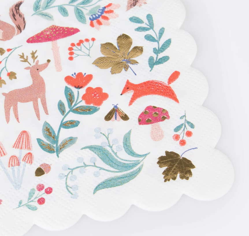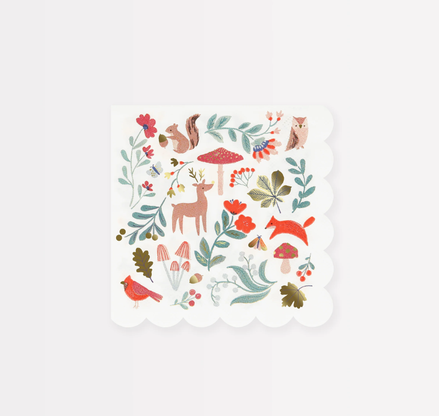 Estes encantadores guardanapos de papel trazem um toque mágico e natural para a sua festa ou aniversário, evocando a serenidade de um bosque de inverno. As suas ilustrações de renas, com detalhes em dourado brilhante, são perfeitas para quem deseja uma celebração com o encanto da natureza e um toque festivo e elegante.