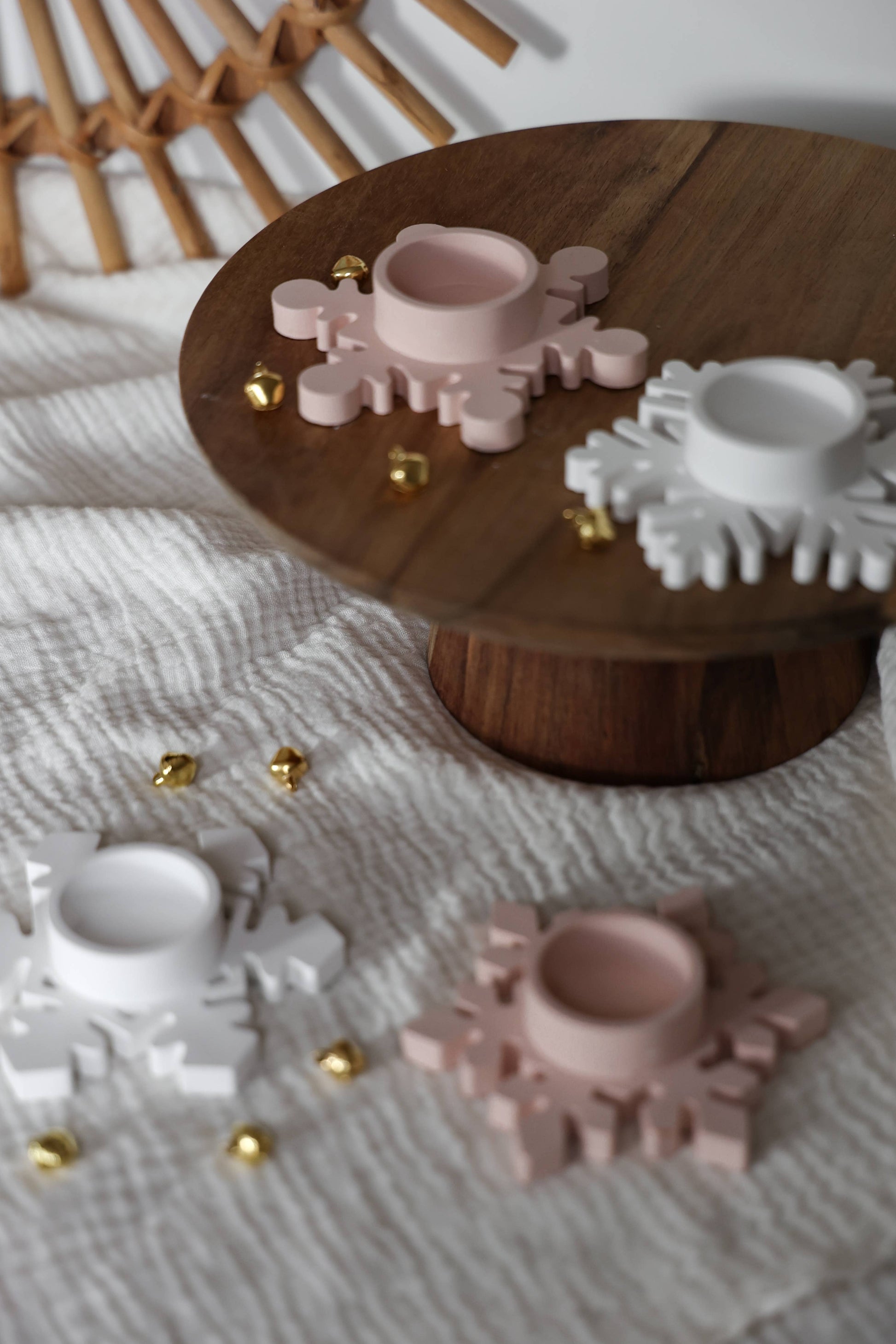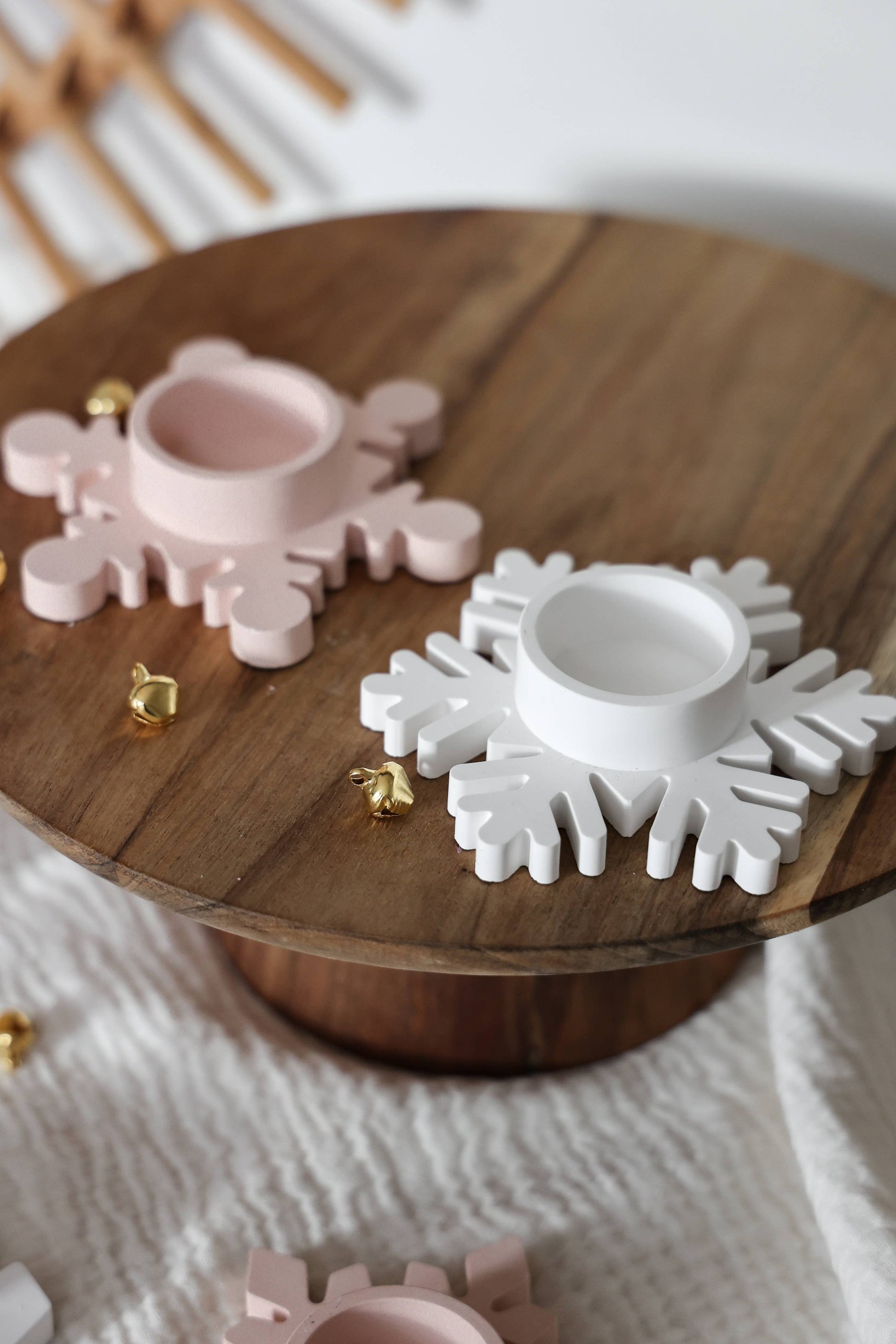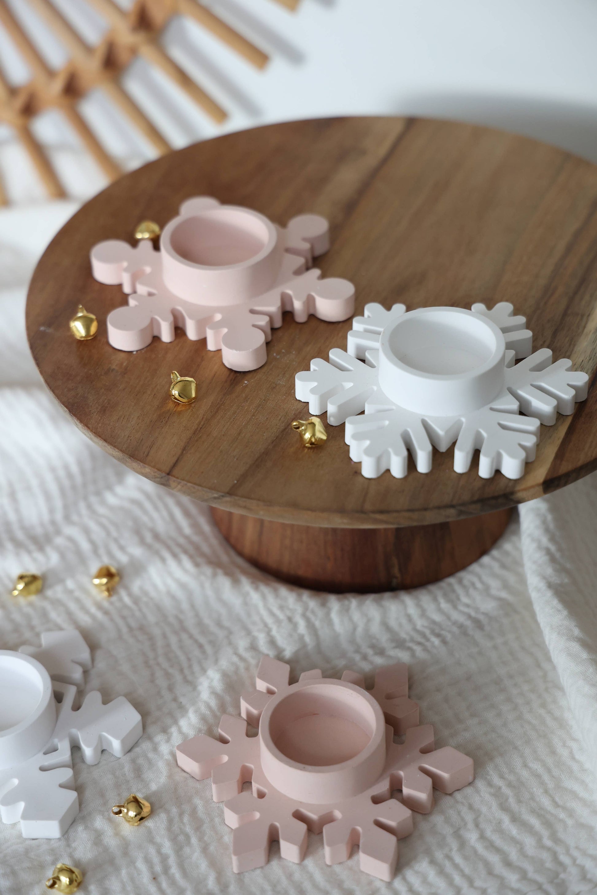 Porta-velas em forma de floco de neve, perfeito para criar uma mesa de inverno harmoniosa. Feito em cerâmica moldada, combina simplicidade com um toque decorativo delicado.