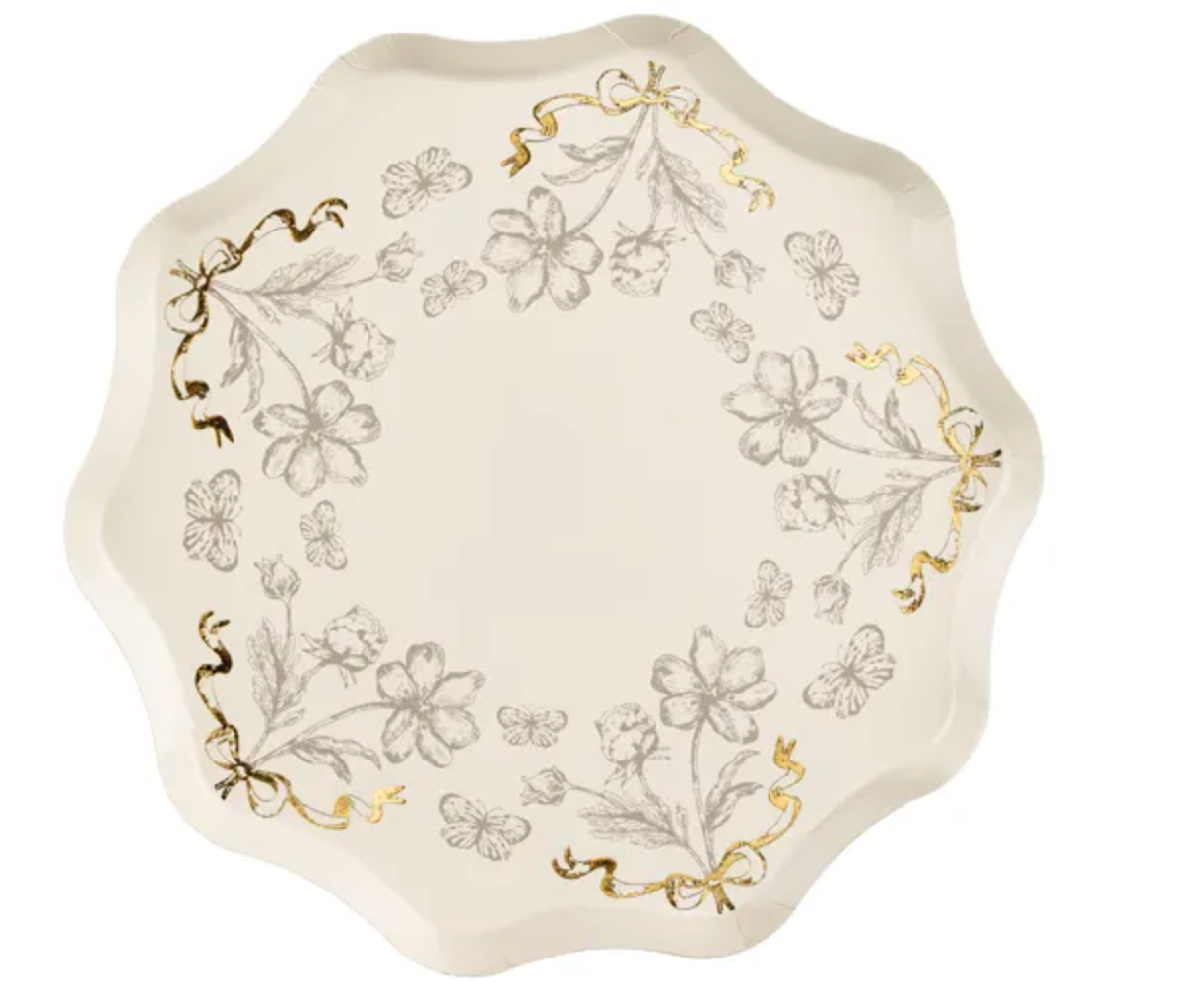 Pratos de papel com estampado de flores, para festa ou aniversário, com 20cm de diâmetro.