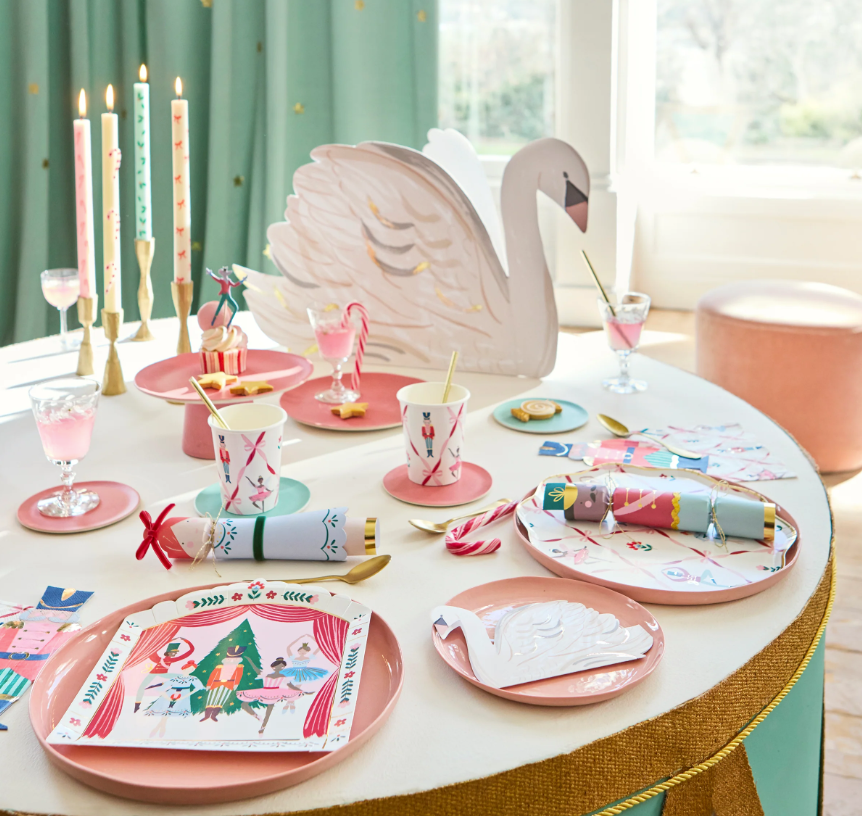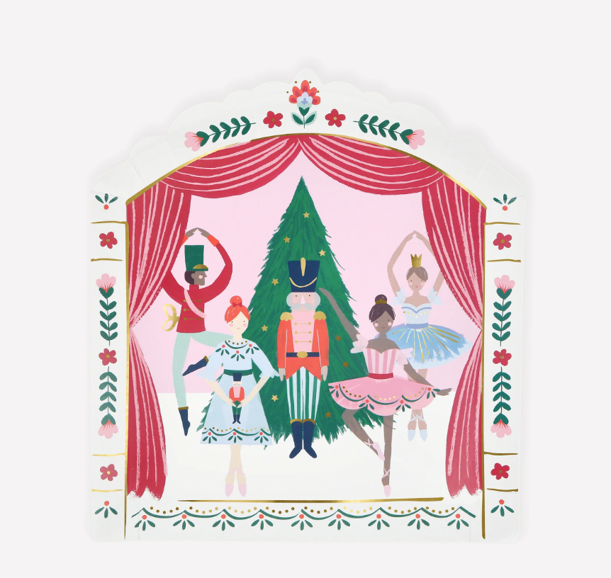 O seu Natal ganha um toque de magia intemporal com os pratos de papel Quebra-Nozes. Estes pratos premium transportam o encanto do bailado clássico para a sua mesa, exibindo personagens icónicas numa elegante paleta de cores natalícias, que harmonizam o tradicional com o moderno.