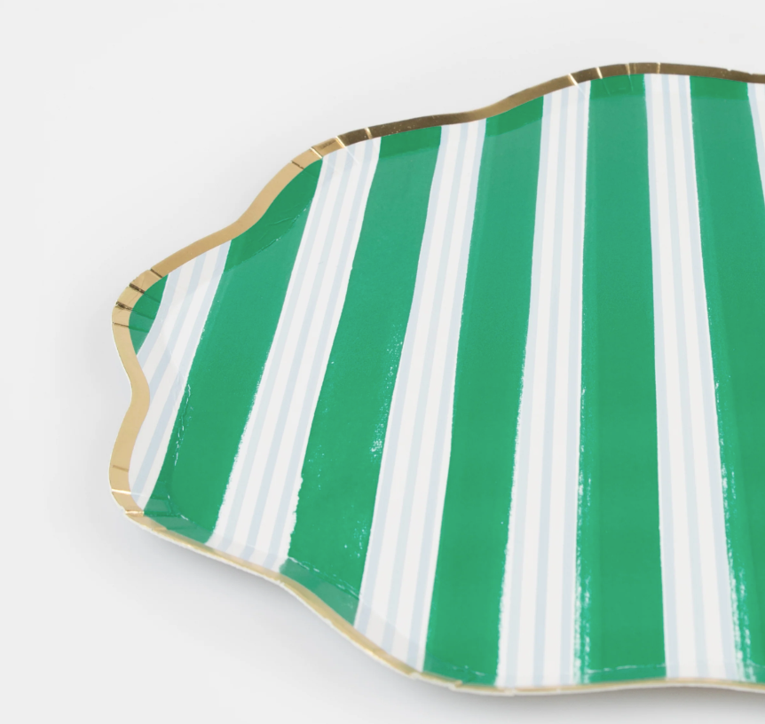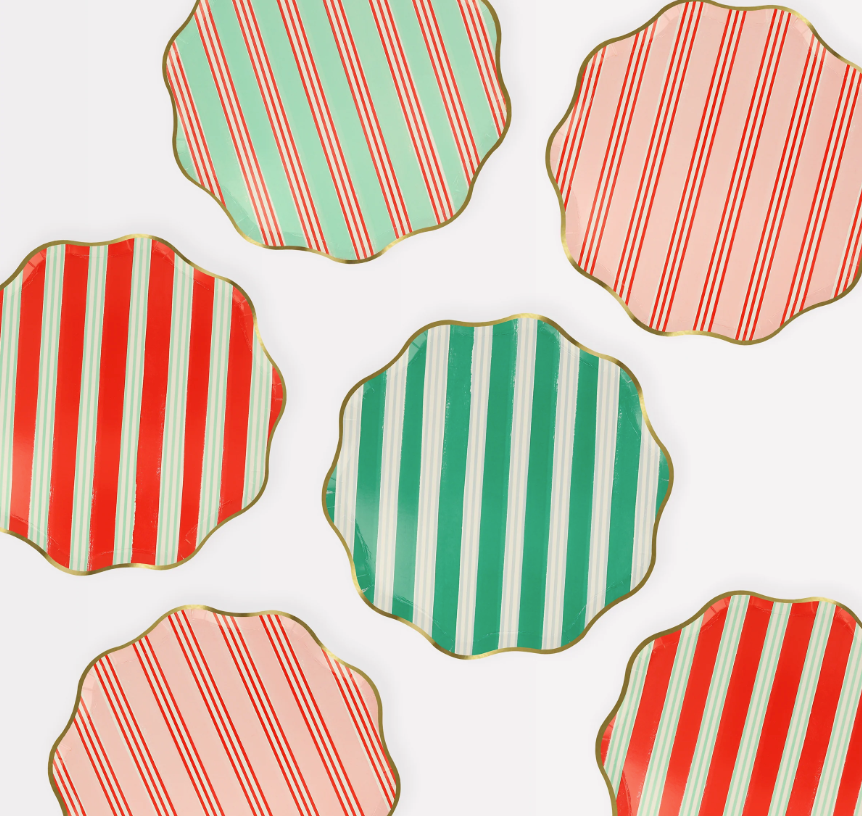 Estes pratos são o toque perfeito para elevar a decoração da sua mesa, seja em celebrações natalícias ou eventos descontraídos. Com um design arrojado de riscas que combina as cores tradicionais do Natal — vermelho e verde — com um toque moderno de rosa e azul, realçado por um brilho dourado, estes pratos adicionam um charme único e festivo à sua mesa. São ideais para criar uma camada elegante na sua mesa de festa ou para servir petiscos em reuniões especiais.