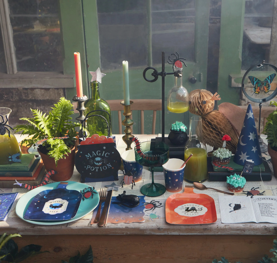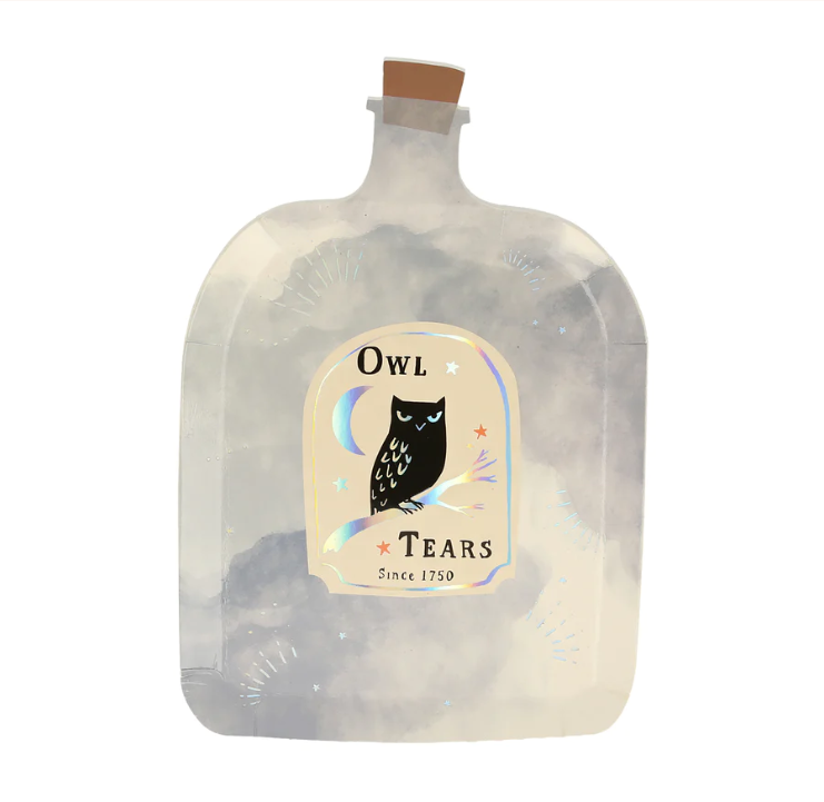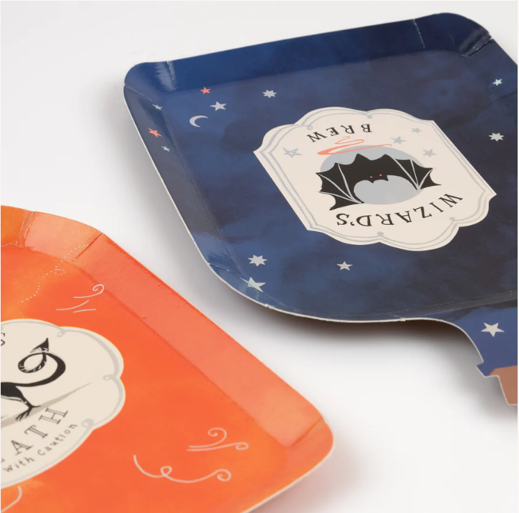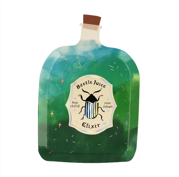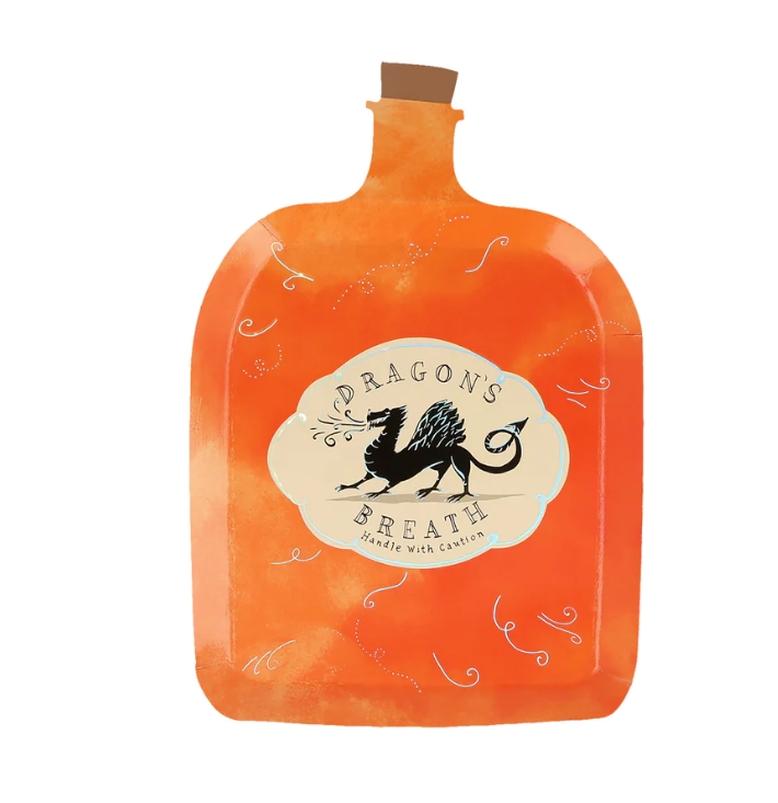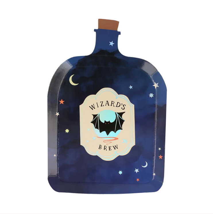 Pratos em forma de garrafa de poção mágica, com a medida de 15,9 x 23,5cm.