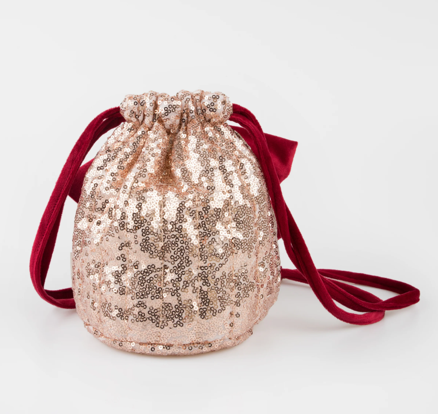 A sua festa ou aniversário ganha um toque de brilho e elegância com esta deslumbrante bolsa de lantejoulas rosa.