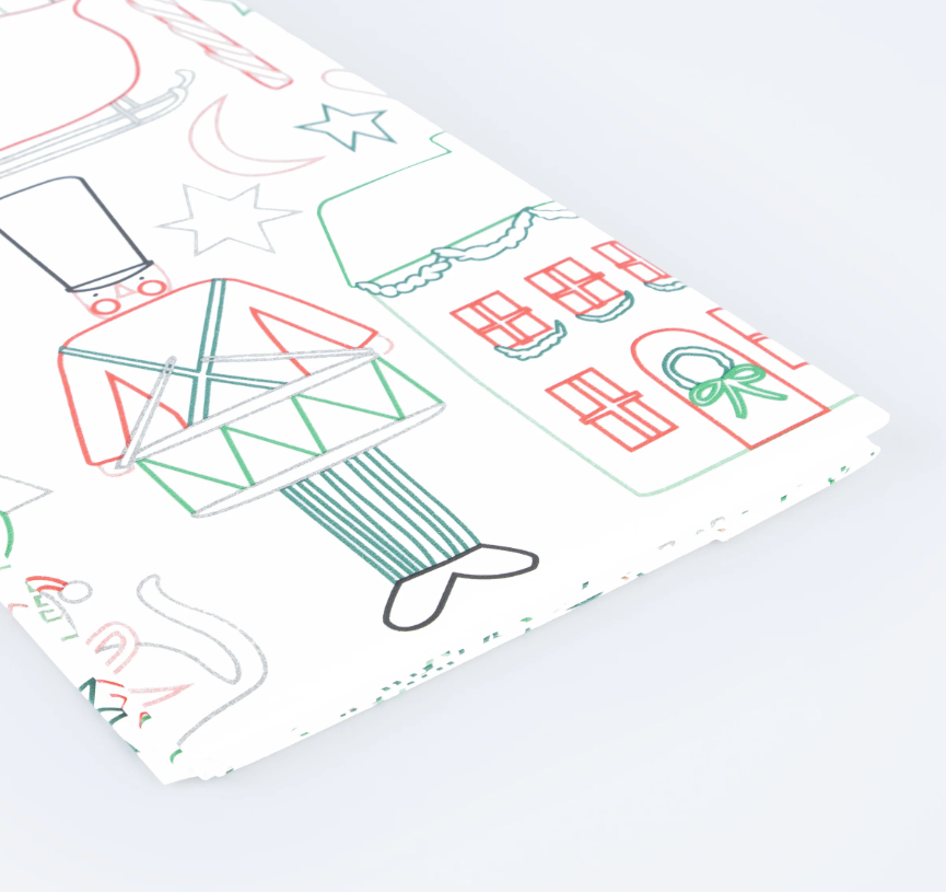Esta toalha de mesa para colorir transforma a refeição numa atividade criativa e divertida. Ilustrações natalícias para entreter as crianças durante o almoço de Natal ou numa festa de aniversário temática.