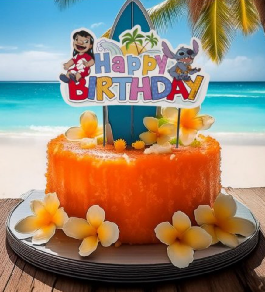 Topo de Bolo em papel, do tema Stitch, para festa de aniversário, com 17,5cm.